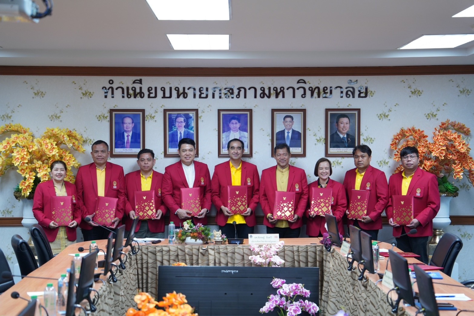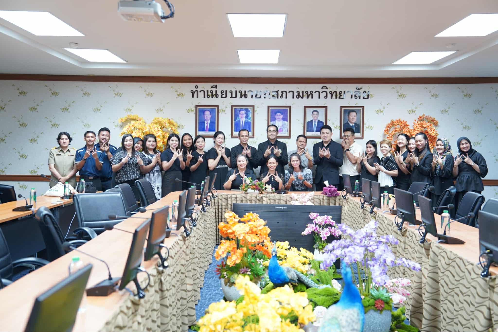 วันที่ 21 ตุลาคม 2568 ผู้ช่วยศาสตราจารย์ ดร.โสภณ ชัยวัฒนกุลวานิช คณบดีคณะครุศาสตร์ มหาวิทยาลัยราชภัฏสงขลา เข้าร่วมการประชุม คณะกรรมการบริหารมหาวิทยาลัยราชภัฏสงขลา ครั้งที่ 7/2568 และร่วมพิธีลงนาม คำรับรองการปฏิบัติราชการระหว่างอธิการบดีกับคณบดี ผู้อำนวยการสำนัก/สถาบัน ประจำปีงบประมาณ พ.ศ. 2569 ทั้งนี้ การประชุมและพิธีลงนามจัดขึ้น ณ ห้องประชุมอรัญ ธรรมโน ชั้น 8 อาคารอำนวยการ 48 มหาวิทยาลัยราชภัฏสงขลา เพื่อกำหนดแนวทางการดำเนินงานของหน่วยงานภายในมหาวิทยาลัยให้เป็นไปตามเป้าหมายเชิงยุทธศาสตร์ และส่งเสริมประสิทธิภาพการบริหารจัดการภายในมหาวิทยาลัยให้บรรลุผลอย่างมีประสิทธิภาพและโปร่งใส