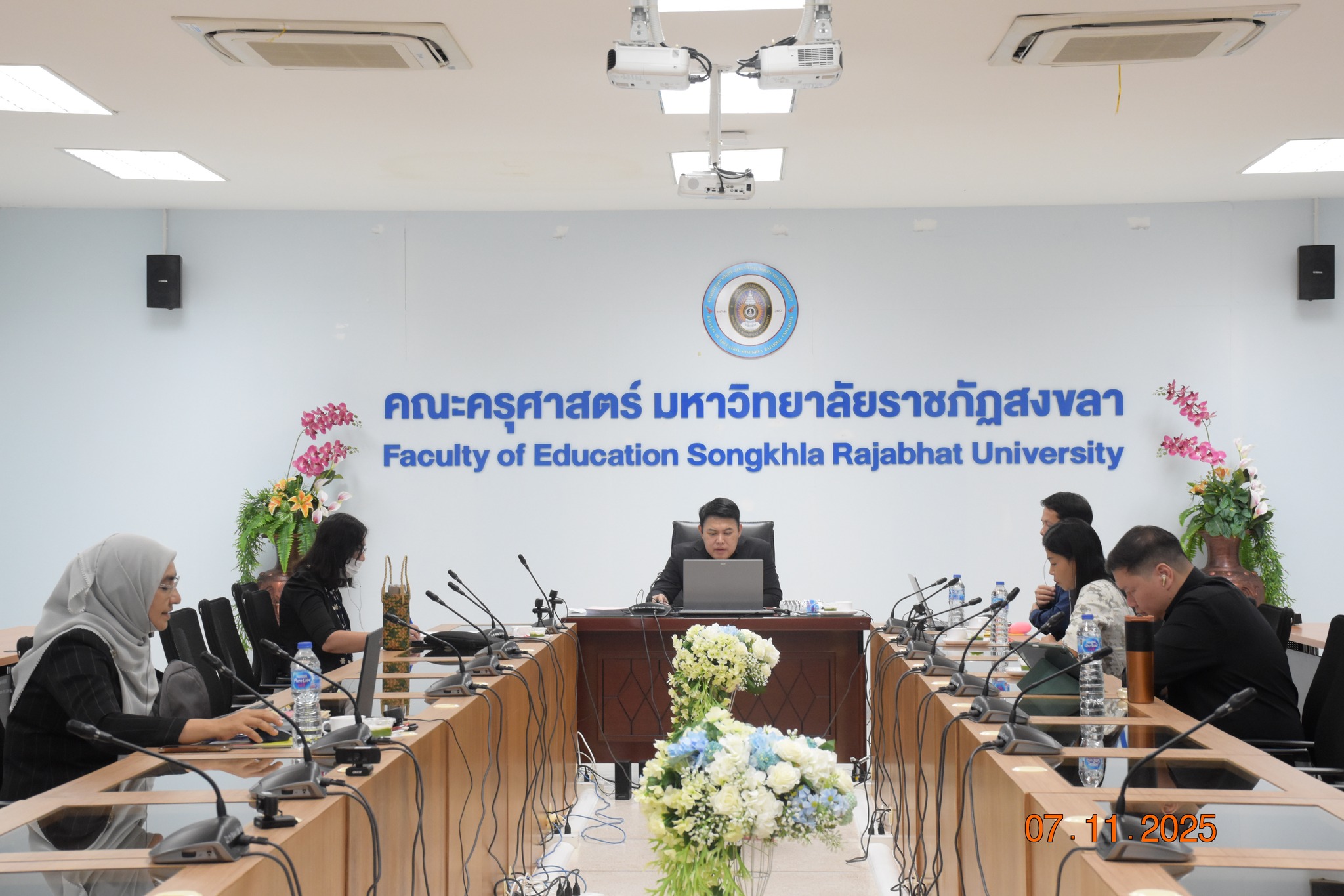 วันที่ 30 ตุลาคม 2568 ผู้ช่วยศาสตราจารย์ ดร.โสภณ ชัยวัฒนกุลวานิช คณบดีคณะครุศาสตร์ มหาวิทยาลัยราชภัฏสงขลา ได้ให้เกียรติเป็นประธานในการประชุมคณะกรรมการบริหารคณะครุศาสตร์ ครั้งที่ 7/2568 ณ ห้องประชุมสร้อยระย้า 68-606 คณะครุศาสตร์ มหาวิทยาลัยราชภัฏสงขลา เพื่อหารือและพิจารณาเรื่องสำคัญในการบริหารและขับเคลื่อนภารกิจของคณะครุศาสตร์ โดยมีคณะกรรมการบริหารเข้าร่วมอย่างพร้อมเพรียง ประกอบด้วย รองคณบดี ผู้ช่วยคณบดี ประธานหลักสูตร หัวหน้าสำนักงาน และหัวหน้างาน