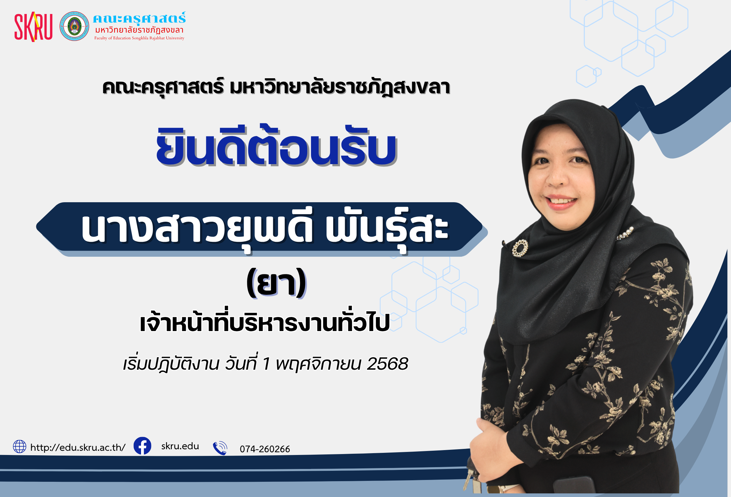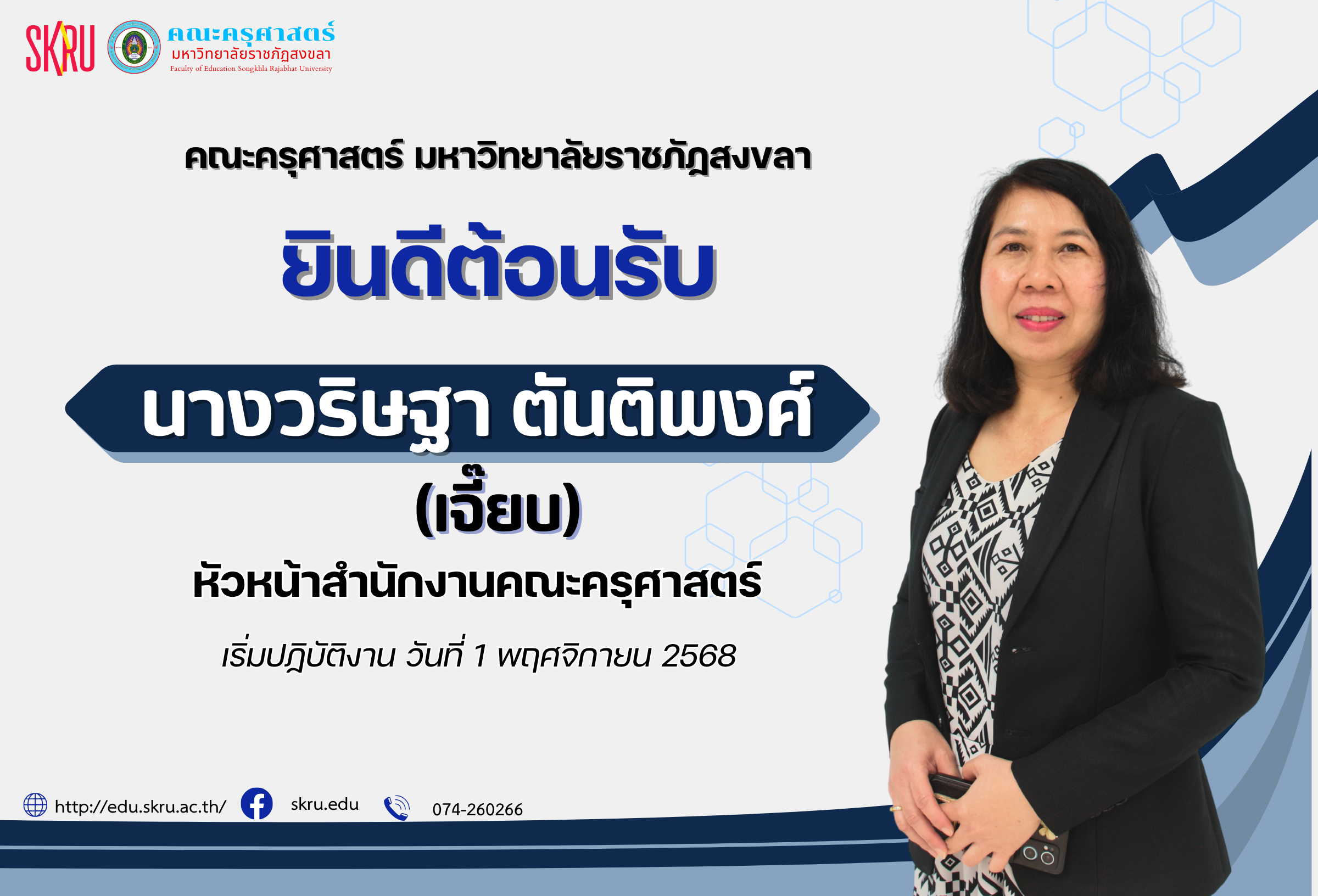 On August 25, 2025, Asst. Prof. Wanchat Charuwanno, Vice President for Planning and Budgeting, along with Asst. Prof. Nidarin Chulawan, Deputy Dean of the Faculty of Education, Asst. Prof. Dr. Ekapol Pairoj, Assistant Dean of the Faculty of Education, Faculty of Education personnel, and Policy and Planning Division, Office of the President, attended an academic seminar to review the Songkhla Provincial Human Resource Development Plan on “Education Day” at the Crystal Hotel, Hat Yai. The opening ceremony was presided over by Mr. Sangkhom Kerdkho, Deputy Governor of Songkhla Province. The seminar aimed to assess successes, problems, and obstacles in implementation and emphasized the importance of human resource development of all ages in line with social and technological changes, particularly the role of artificial intelligence (AI). Asst. Prof. Nidarin Chulawan, Deputy Dean of the Faculty of Education, represented Songkhla Rajabhat University in presenting the results of its operations to the meeting, along with four universities in Songkhla Province.