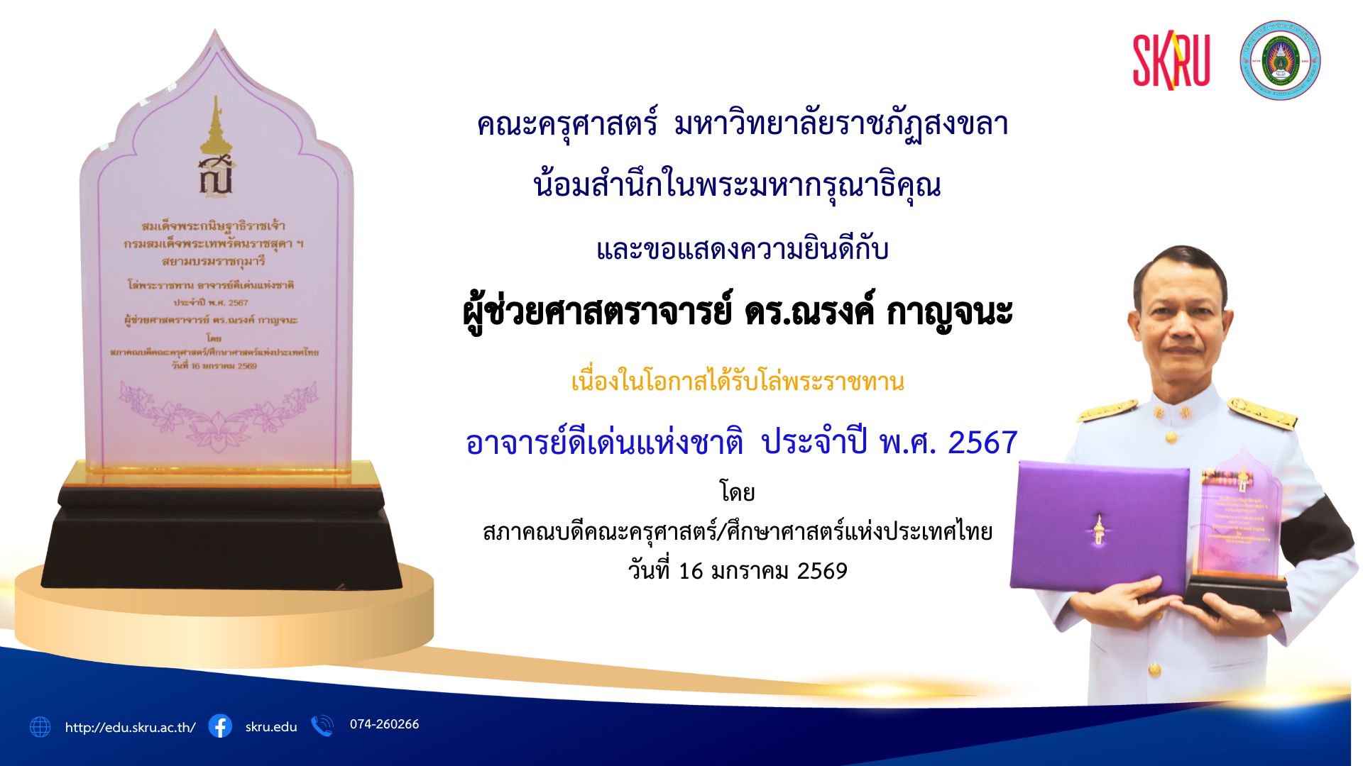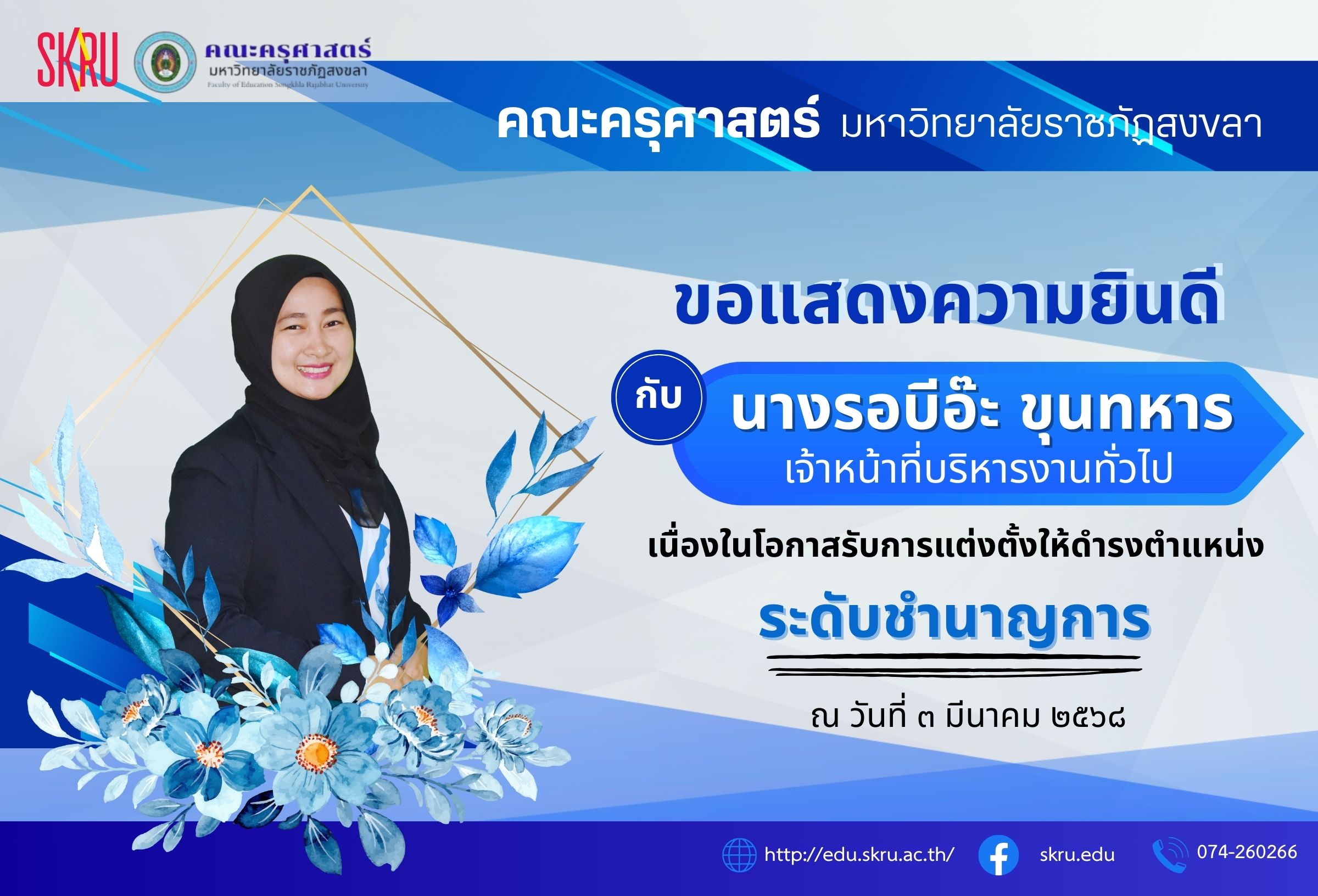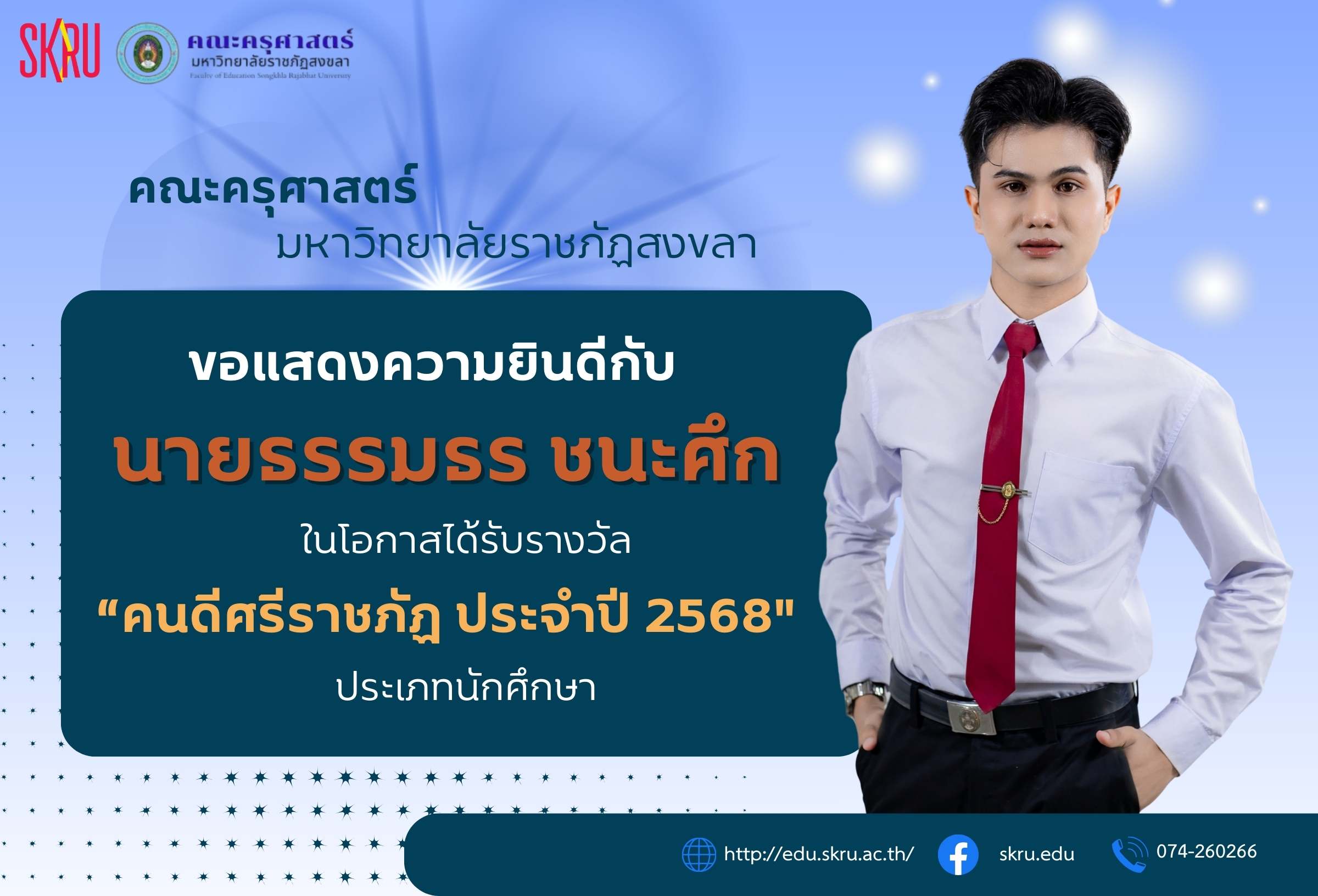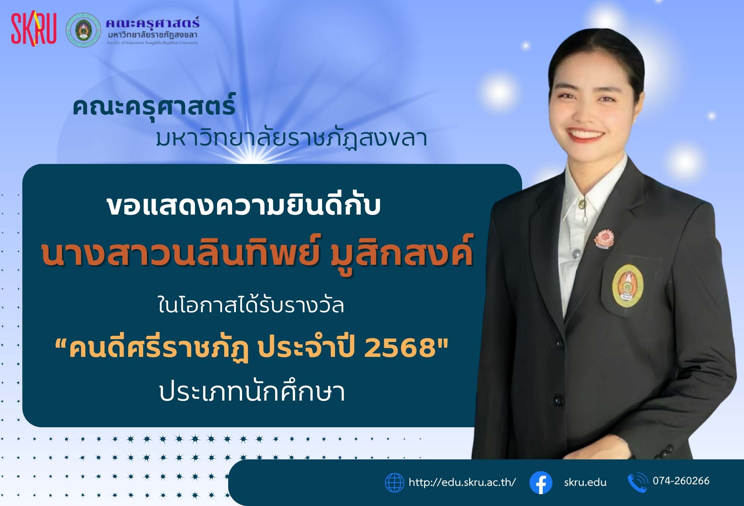 Organized by the Faculty of Education Student Club, the competition took place from October 10-12, 2025, at the Songkhla Rajabhat University sports field. The event featured a creative parade from each discipline and a fun aerobic dance performance before the various sports competitions, which were filled with unity and sportsmanship. The overall results showed that the “Mathematics Department” won first place, reflecting the teamwork, ability, and determination of the outstanding mathematics students in both sports and creativity. This competition aims to promote physical and mental health among students, foster teamwork, and strengthen relationships among students in the Faculty of Education.